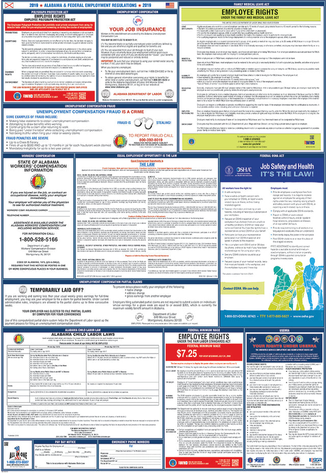With the All In One Poster Company Compliance program, our team will monitor changes in labor laws for you. Subscribers will receive replacement posters whenever mandatory updates occur. Changes may happen multiple times per year, annually, or less frequently, depending on state or federal requirements. The very nature of these changes is quite unpredictable, except for a few that have yearly cycles, such as minimum wage increases in certain states.