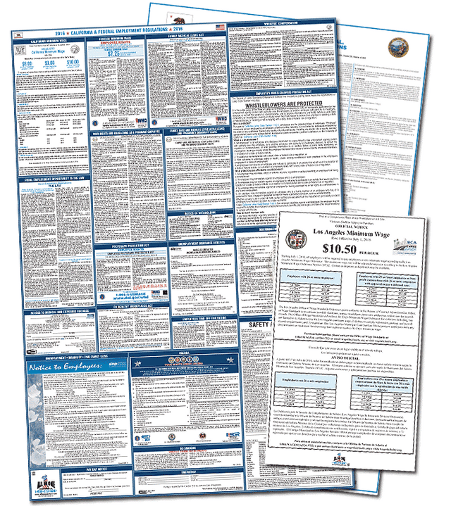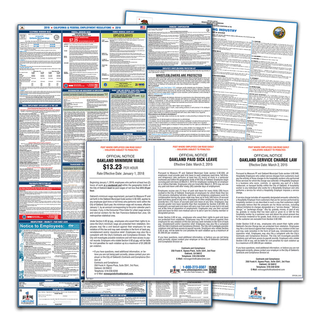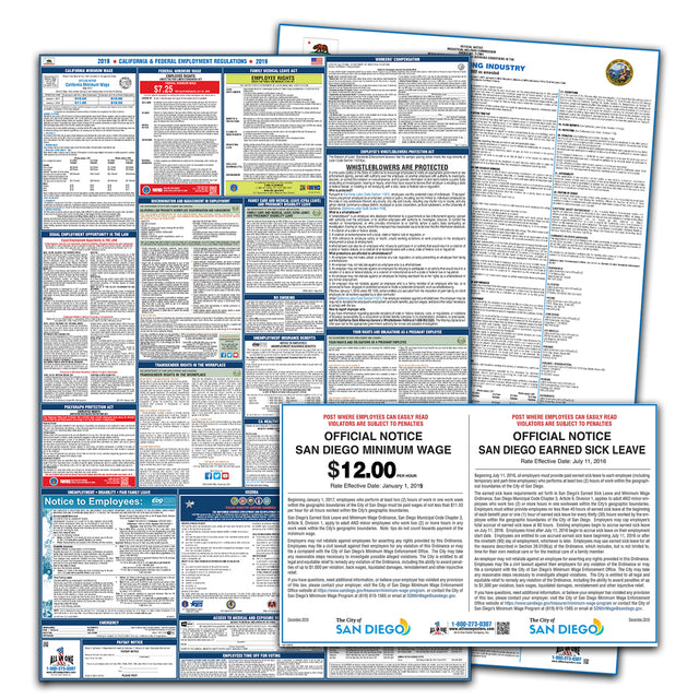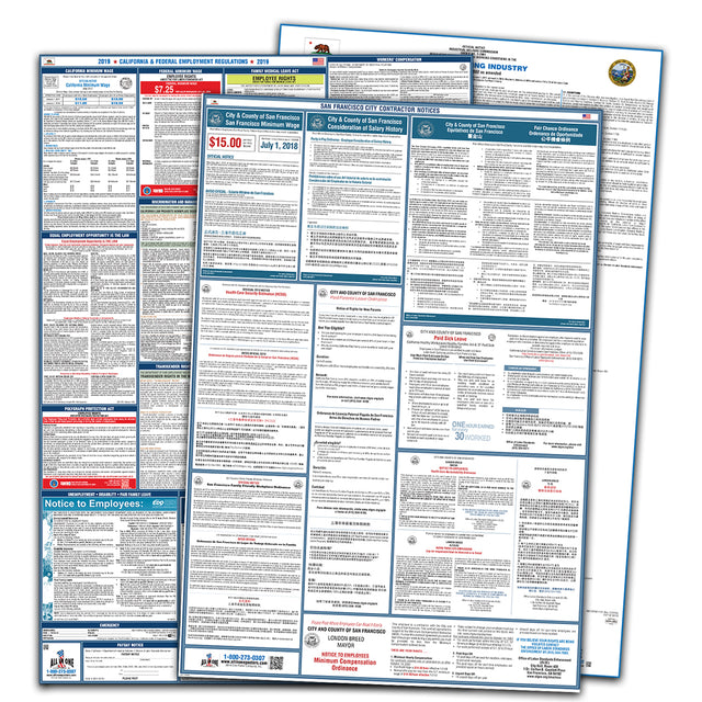 Stay compliant with mandatory labor law posting requirements with the California Federal and State Labor Law Poster Package. These posters are essential for businesses of all sizes operating in California, as labor law postings are legally required in workplaces where employees can easily view them. Our California workplace poster packages were created to fulfill the California requirement that BOTH the State and Federal Combination Poster, as well as the corresponding IWC Wage Order Poster, be posted side by side.