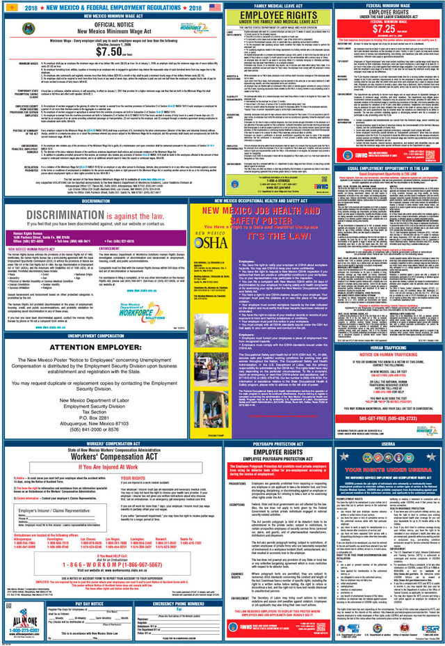 With the All In One Poster Company Compliance program, our team will monitor changes in labor laws for you. Subscribers will receive replacement posters whenever mandatory updates occur. Changes may happen multiple times per year, annually, or less frequently, depending on state or federal requirements. The very nature of these changes is quite unpredictable, except for a few that have yearly cycles, such as minimum wage increases in certain states.