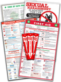 Order our collection of restaurant safety posters from All In One Poster Company. This restaurant safety poster package provides employees with essential guidance on workplace safety, emergency response, hazard awareness, and rights regarding sexual harassment, helping ensure a safe, compliant, and informed work environment. In this package, there are five posters: Federal or California Code of Safe Practices, First Aid / Choking / CPR, Restaurant Safety Awareness, Federal/California Sexual Harassment, and Fire Extinguisher Locators.