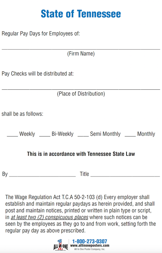 2026 Tennessee & Federal Labor Law Poster