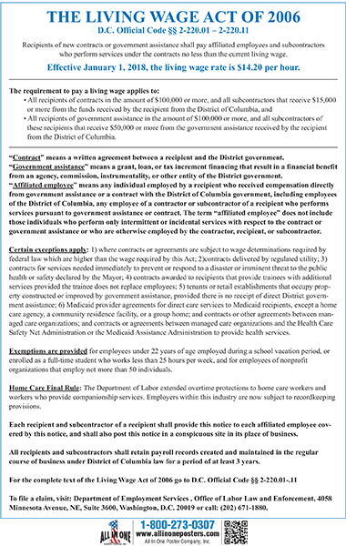 With the All In One Poster Company Compliance program, our team will monitor changes in labor laws for you. Subscribers will receive replacement posters whenever mandatory updates occur. Changes may happen multiple times per year, annually, or less frequently, depending on state or federal requirements. The very nature of these changes is quite unpredictable, except for a few that have yearly cycles, such as minimum wage increases in certain states.