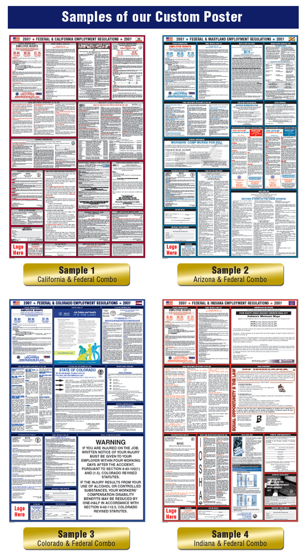 For a more professional and personal approach to compliance posters, the All In One Poster Company, Inc. offers customers the opportunity to completely customize the required labor law and specialty posters by incorporating their own logo and coloring on the poster proper.